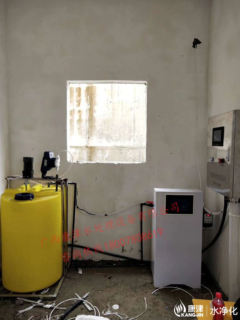 工藝流程:河水-絮凝加藥-石英砂過濾器-二氧化氯加藥器-凈水箱-各用水點(diǎn)