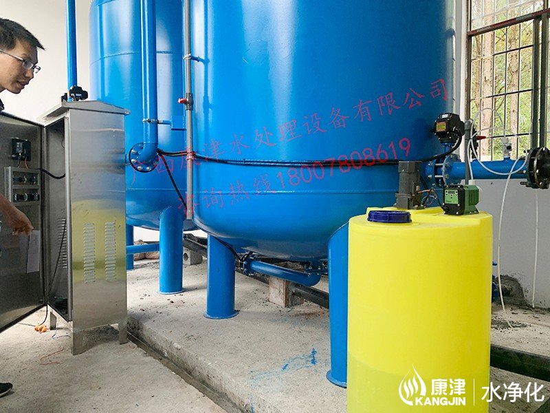工藝流程:山泉水-絮凝投加器-石英砂過濾器-二氧化氯加藥器-用水點(diǎn)