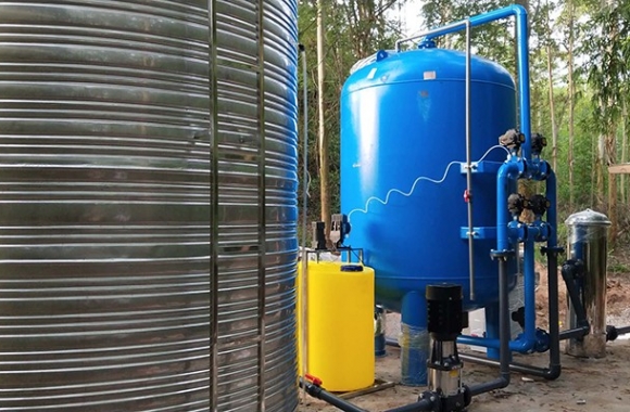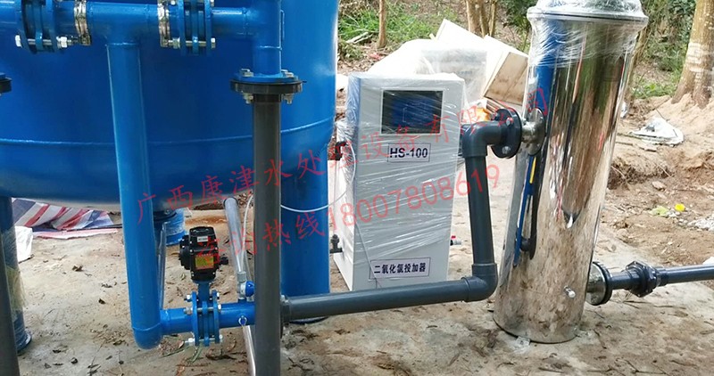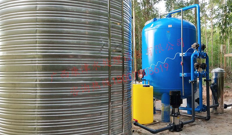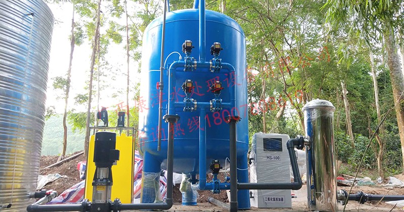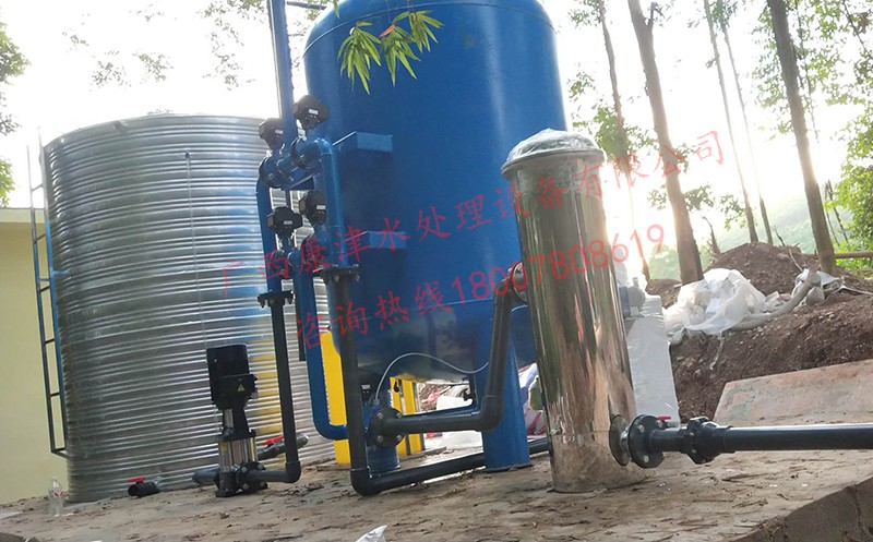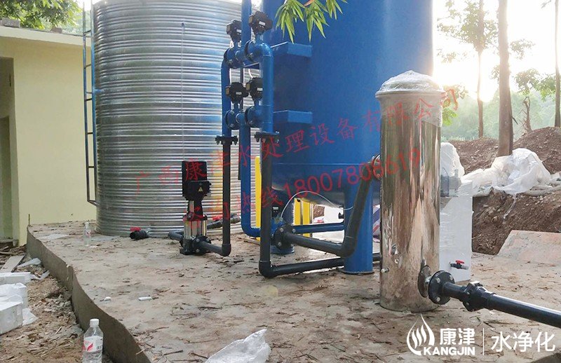 項目名稱:蘇圩河水凈化工程 設備名稱:30噸壓力式凈水設備 工藝流程:河水-原水箱-石英砂過濾器-精密過濾器-二氧化氯消毒-加壓泵-高位水塔 ...