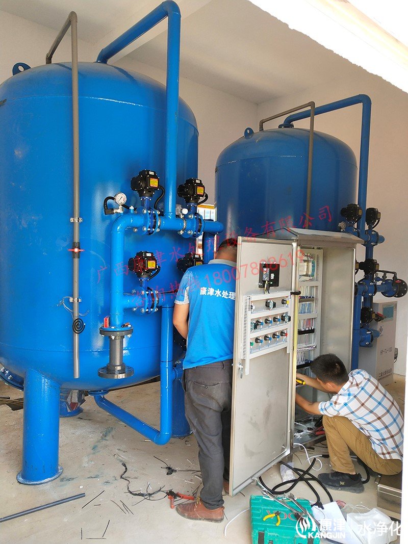 項(xiàng)目名稱:貴港公王村河水凈化工程 設(shè)備名稱:30噸壓力式凈水設(shè)備 工藝流程:河水-石英砂過濾器(二級(jí)過濾)-二氧化氯消毒...