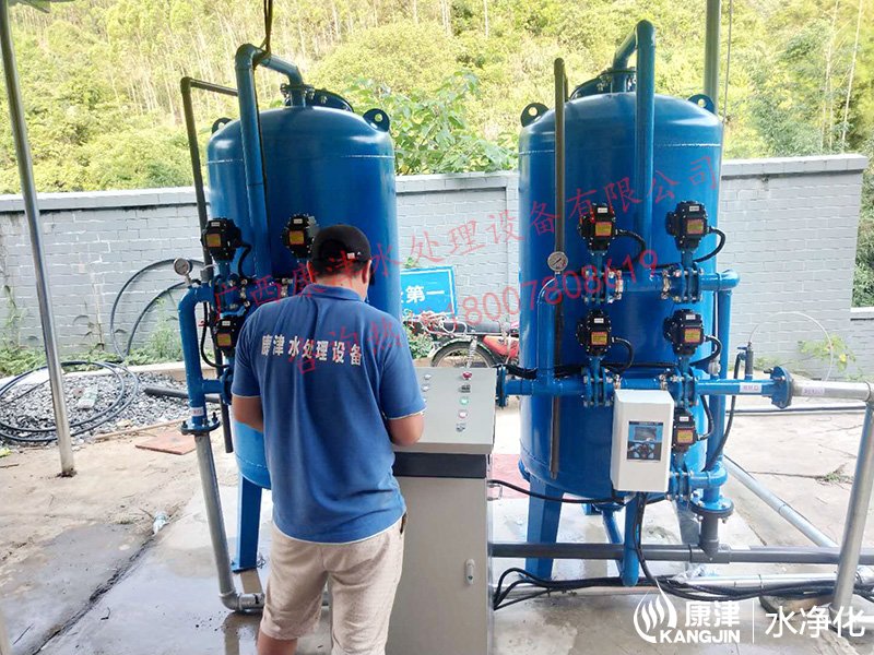 項目名稱:梧州市岑溪市山泉水凈化工程 設(shè)備名稱:5-8噸山泉水壓力式凈水設(shè)備 工藝流程:山泉水-石英砂過濾器-二氧化氯消毒-絮凝加藥-加壓泵-高位水塔...