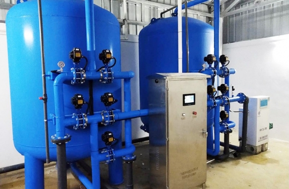 設(shè)備是壓力式的,其原理是當(dāng)原水自上而下通過濾料時(shí),水中懸浮物由于吸附和機(jī)械阻流作用被濾層表面截留下來;當(dāng)水流進(jìn)濾層中間時(shí),由于濾料層中的砂粒排列的更緊密,使水中微粒有更多的機(jī)會(huì)與砂粒碰撞,于是水中凝絮物、懸浮物和砂粒表面相互粘附,水中雜質(zhì)截留在濾料層中,從而得到澄清的水質(zhì)。經(jīng)過濾后的出水懸浮物可在3毫克/升以下。
