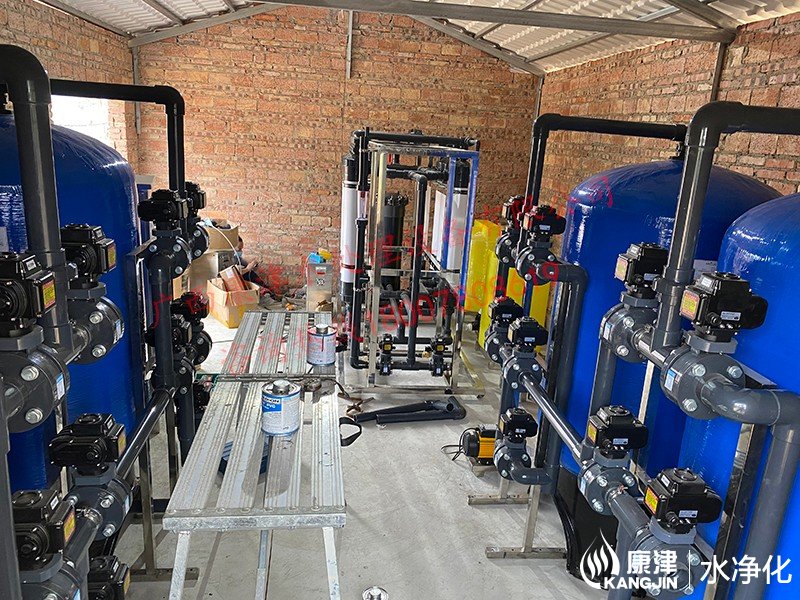 10T/H超濾水處理設(shè)備,業(yè)主是廣西防城港海水養(yǎng)殖公司,產(chǎn)出的凈水用于漁業(yè)養(yǎng)殖使用。超濾水處理設(shè)備過濾精度為0.005到0.01微米范圍內(nèi),可有效去除水中的微粒、膠體、細(xì)菌、熱源及高分子有機(jī)物質(zhì)等。設(shè)備廣泛應(yīng)用于礦泉水制造、食品和醫(yī)藥生產(chǎn)、城市中水會用等領(lǐng)域。設(shè)備工藝流程。原水來自于大壩,進(jìn)入保溫水箱后經(jīng)高壓泵進(jìn)入預(yù)處理系統(tǒng),根據(jù)業(yè)主水質(zhì)情況,預(yù)處理部分我們推薦的是砂濾和錳砂濾,主要是為了軟化水質(zhì)。預(yù)處理產(chǎn)水接著進(jìn)入精密過濾器,主要是PP棉過濾工作,PP棉更換成本低,一般3個(gè)月左右檢查一次,看情況更換。超濾是一種以篩分為分離原理,以壓力為推動(dòng)力的膜分離過程,所以超濾前需要增加壓力泵。產(chǎn)出的凈水到水箱后由業(yè)主的抽水泵供應(yīng)到用水點(diǎn)。在這里說下,我們看到成套設(shè)備有一個(gè)黃色的桶,它是負(fù)責(zé)給超濾組件加藥清洗用的,及時(shí)清理超濾膜內(nèi)的雜質(zhì),保證膜元件的使用壽命。