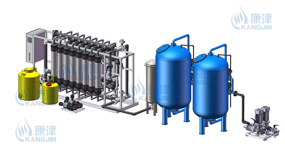 本方案主要針對原水為河水,以河水為飲用水源的地區(qū),常常在雨季會遇到水質(zhì)渾濁發(fā)黃問題。河水通常比較渾濁,水面漂浮臟東西、樹葉、水藻等,尤其在暴雨季節(jié),水中泥沙量增加,雜質(zhì)多,濁度、色度、氣味、細(xì)菌含量超標(biāo),因此必須使用專業(yè)凈水設(shè)備處理后才能達(dá)到生活飲用的目的。我們對河水的凈化主要是除去水中雜質(zhì),包括以下幾種:泥沙、大分子顆粒雜質(zhì)、懸浮物、藻類、膠體,去除污染色度、異味、微生物、細(xì)菌、病毒等,有的源水會含有HCO、Ca 、SO 、Cl 、Na 、Mg 和K。為了將河水指標(biāo)達(dá)到生活用水標(biāo)準(zhǔn),通過康泉水處理 超濾設(shè)備進(jìn)而得到凈化。康泉水處理為根據(jù)實(shí)際用途情況制定以下解決方案。用水人數(shù)大約在400至500人,用水處理量每小時約15-20噸。