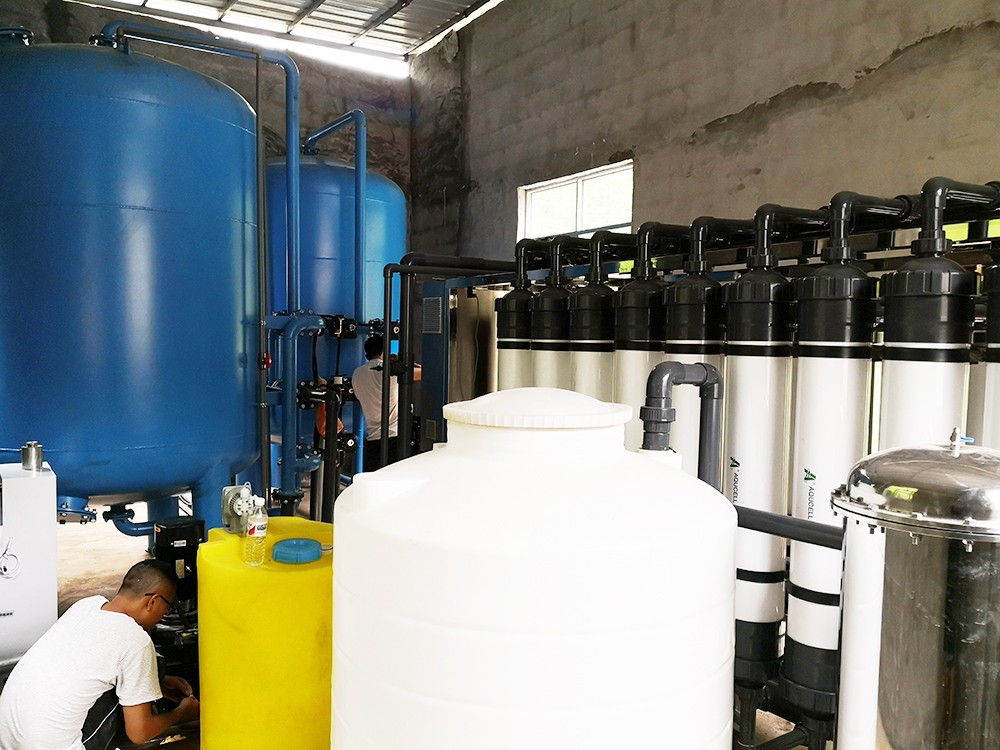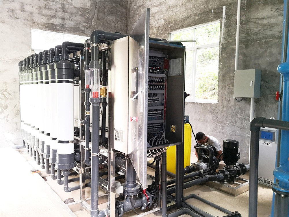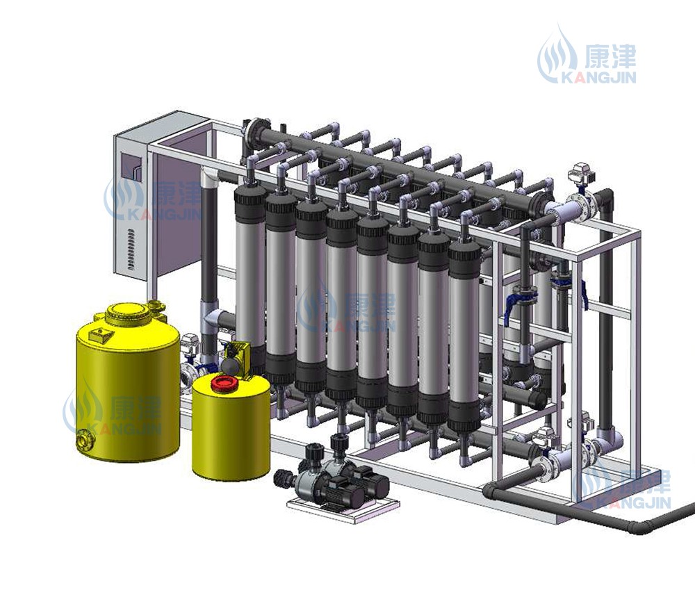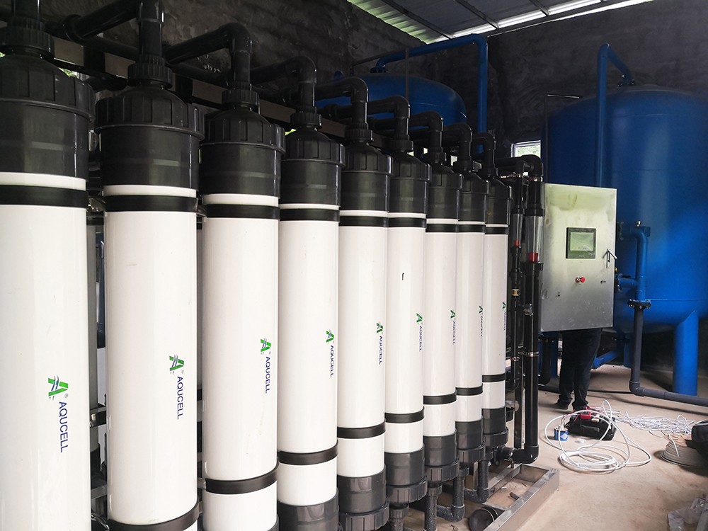 超濾是利用超濾膜的微孔篩分機(jī)理,在壓力驅(qū)動下,將直徑為0.002-0.1μm之間的顆粒和雜質(zhì)截留,去除懸浮物、膠體、蛋白質(zhì)、微生物和大分子有機(jī)物。