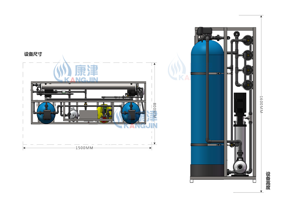 為保證關(guān)鍵設(shè)備,如:單反滲透裝置的長期可靠穩(wěn)定運(yùn)行,設(shè)置預(yù)處理系統(tǒng),滿足反滲透膜(RO)進(jìn)水指標(biāo):濁度<0.5NTU、SDI<4、余氯<0.1ppm。根據(jù)原水水質(zhì),預(yù)處理系統(tǒng)由原水水箱、原水泵、多介質(zhì)過濾器、活性炭過濾器、軟化過濾器、保安過濾及相關(guān)輔助設(shè)備組成。