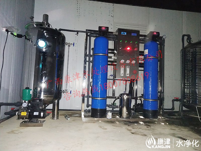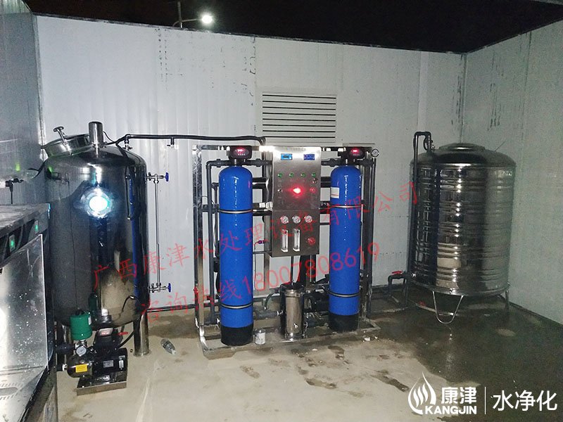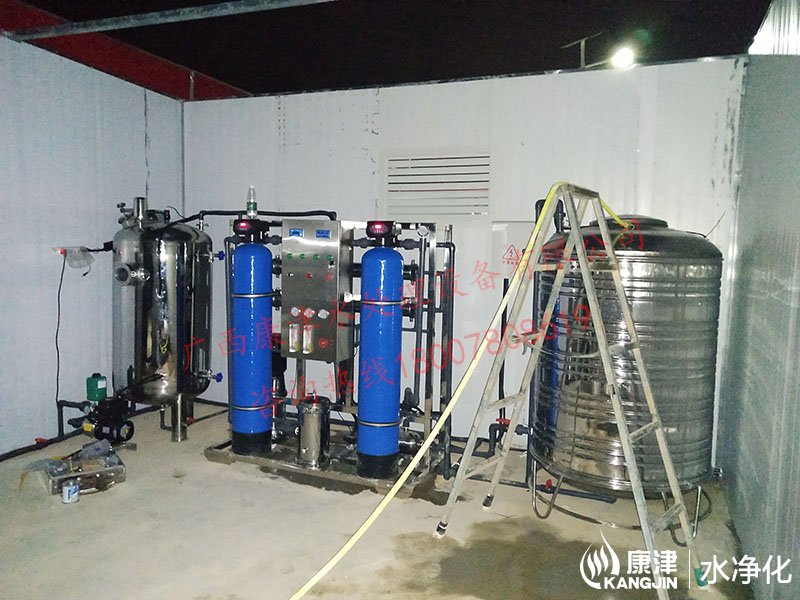項(xiàng)目名稱:中交武鳴區(qū)鑼圩鎮(zhèn)路段項(xiàng)目部直飲水設(shè)備 設(shè)備名稱:0.5噸反滲透純凈水設(shè)備 工藝流程:原水箱-原水泵-石英砂過濾器-活性炭過濾器-精密過濾器-反滲透設(shè)備-凈水箱-變頻供水-直飲機(jī)...