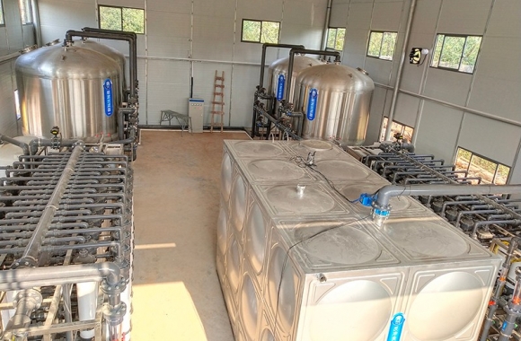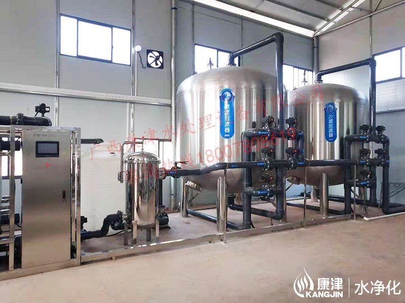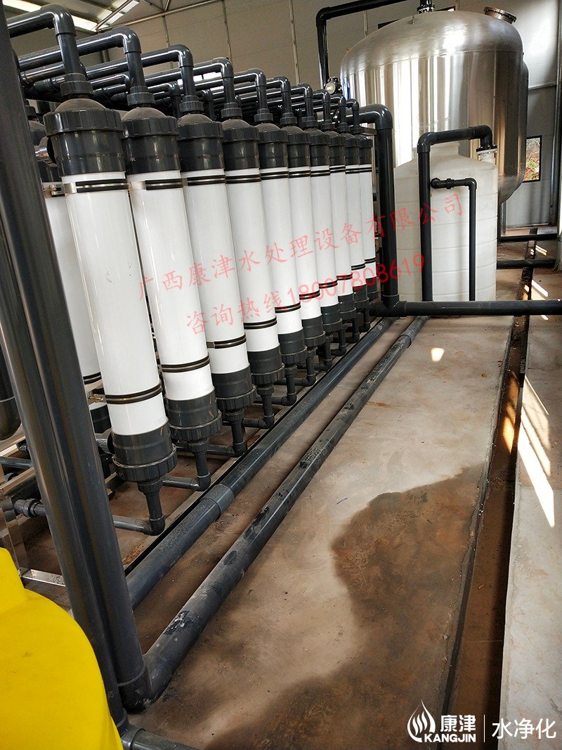 工藝流程:石英砂過(guò)濾器-活性炭過(guò)濾器-精密過(guò)濾器-超濾膜機(jī)主-凈水箱