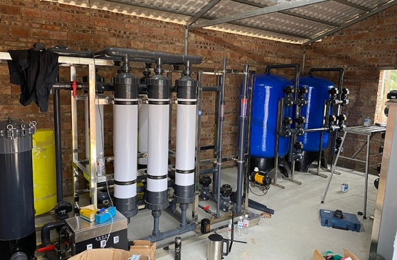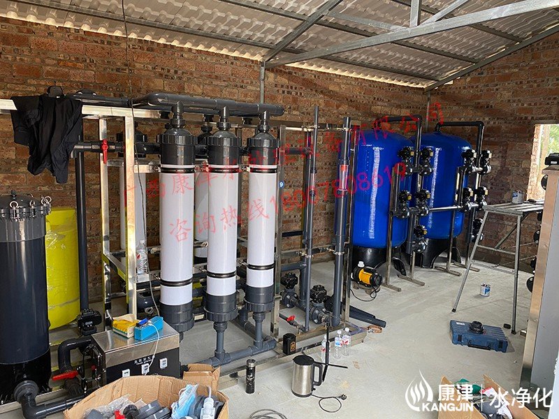 10T/H超濾水處理設(shè)備,業(yè)主是廣西防城港海水養(yǎng)殖公司,產(chǎn)出的凈水用于漁業(yè)養(yǎng)殖使用。超濾水處理設(shè)備過(guò)濾精度為0.005到0.01微米范圍內(nèi),可有效去除水中的微粒、膠體、細(xì)菌、熱源及高分子有機(jī)物質(zhì)等。設(shè)備廣泛應(yīng)用于礦泉水制造、食品和醫(yī)藥生產(chǎn)、城市中水會(huì)用等領(lǐng)域。設(shè)備工藝流程。原水來(lái)自于大壩,進(jìn)入保溫水箱后經(jīng)高壓泵進(jìn)入預(yù)處理系統(tǒng),根據(jù)業(yè)主水質(zhì)情況,預(yù)處理部分我們推薦的是砂濾和錳砂濾,主要是為了軟化水質(zhì)。預(yù)處理產(chǎn)水接著進(jìn)入精密過(guò)濾器,主要是PP棉過(guò)濾工作,PP棉更換成本低,一般3個(gè)月左右檢查一次,看情況更換。超濾是一種以篩分為分離原理,以壓力為推動(dòng)力的膜分離過(guò)程,所以超濾前需要增加壓力泵。產(chǎn)出的凈水到水箱后由業(yè)主的抽水泵供應(yīng)到用水點(diǎn)。在這里說(shuō)下,我們看到成套設(shè)備有一個(gè)黃色的桶,它是負(fù)責(zé)給超濾組件加藥清洗用的,及時(shí)清理超濾膜內(nèi)的雜質(zhì),保證膜元件的使用壽命。