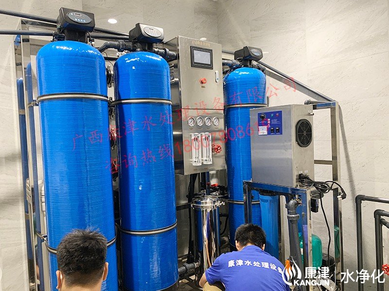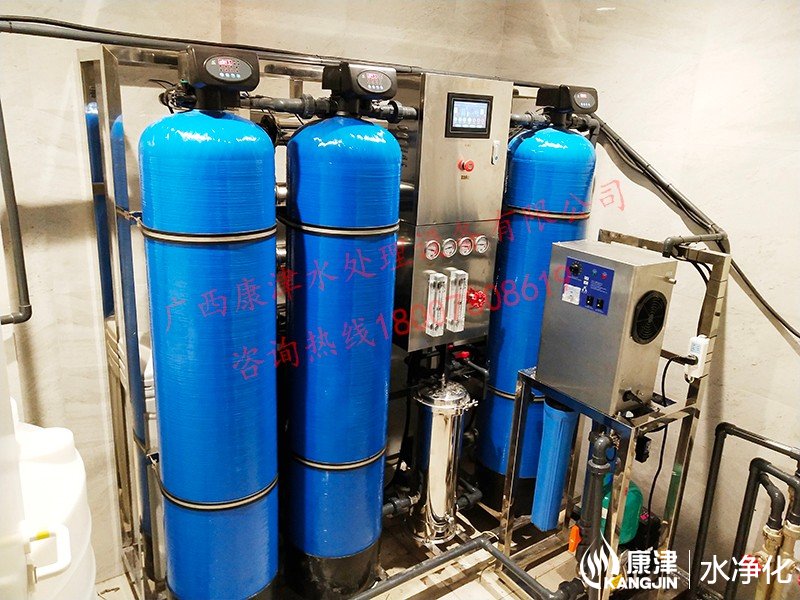 工藝流程:原水箱-原水泵-石英砂過濾器-活性炭過濾器-樹脂過濾器-精密過濾器-反滲透設(shè)備-軟水鹽-凈水箱-變頻供水回水殺菌系統(tǒng)-用水點