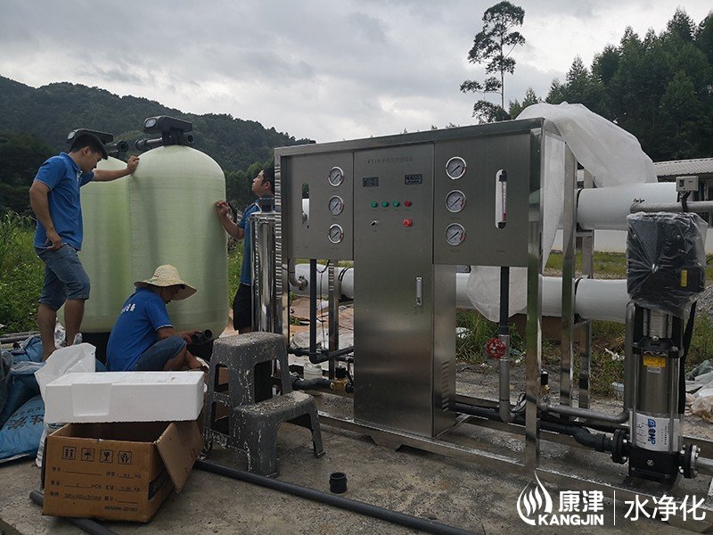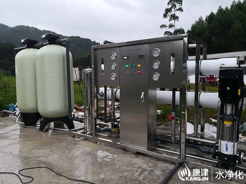 本月初在上林養(yǎng)殖場完工一臺(tái)純凈水直飲設(shè)備,該設(shè)備采用高品質(zhì)反滲透膜技術(shù)、優(yōu)質(zhì)304不銹鋼管路、不銹鋼過濾罐體、PLC微電腦控制系統(tǒng)、PLC簡易觸屏控制面板。整套直飲水設(shè)備的過濾流程為山泉水→原水箱→原水泵→石英砂過濾器→活性炭過濾器→(阻垢劑加藥裝置)→保安過濾器→高壓泵→反滲透裝置