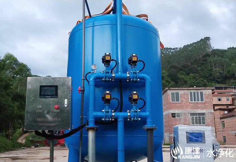 設(shè)備是壓力式的,其原理是當(dāng)原水自上而下通過濾料時(shí),水中懸浮物由于吸附和機(jī)械阻流作用被濾層表面截留下來;當(dāng)水流進(jìn)濾層中間時(shí),由于濾料層中的砂粒排列的更緊密,使水中微粒有更多的機(jī)會(huì)與砂粒碰撞,于是水中凝絮物、懸浮物和砂粒表面相互粘附,水中雜質(zhì)截留在濾料層中,從而得到澄清的水質(zhì)。經(jīng)過濾后的出水懸浮物可在3毫克/升以下。