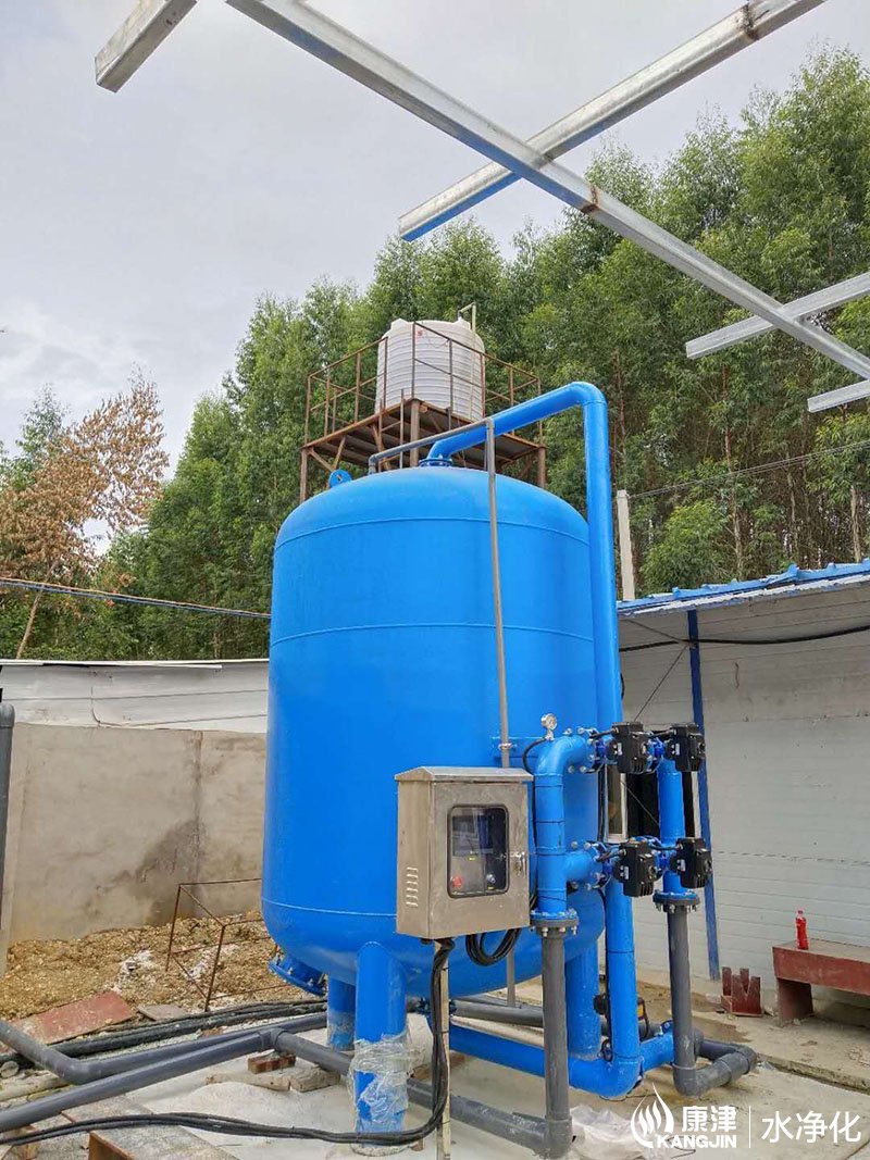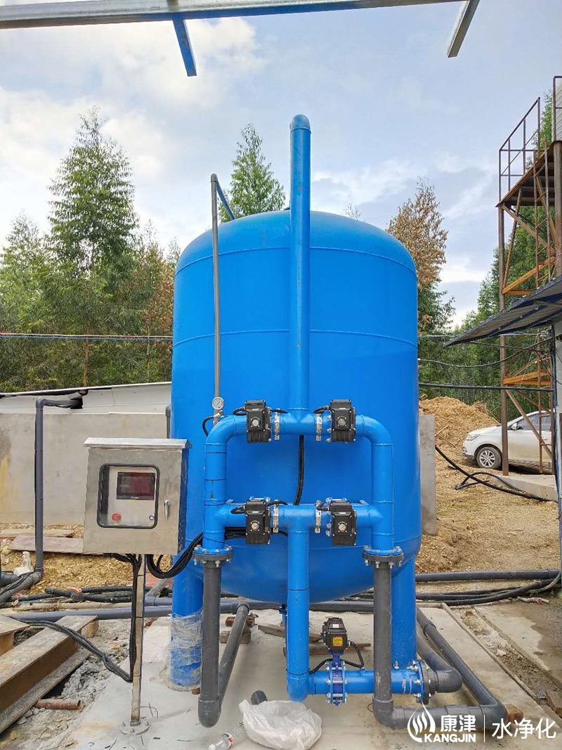 設(shè)備是壓力式的,其原理是當(dāng)原水自上而下通過濾料時,水中懸浮物由于吸附和機(jī)械阻流作用被濾層表面截留下來;當(dāng)水流進(jìn)濾層中間時,由于濾料層中的砂粒排列的更緊密,使水中微粒有更多的機(jī)會與砂粒碰撞,于是水中凝絮物、懸浮物和砂粒表面相互粘附,水中雜質(zhì)截留在濾料層中,從而得到澄清的水質(zhì)。經(jīng)過濾后的出水懸浮物可在3毫克/升以下。